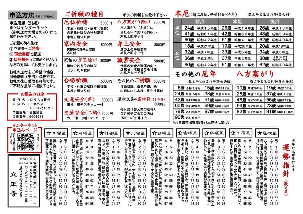 〒880-0012 宮崎県宮崎市末広1-6-1 立正寺宛